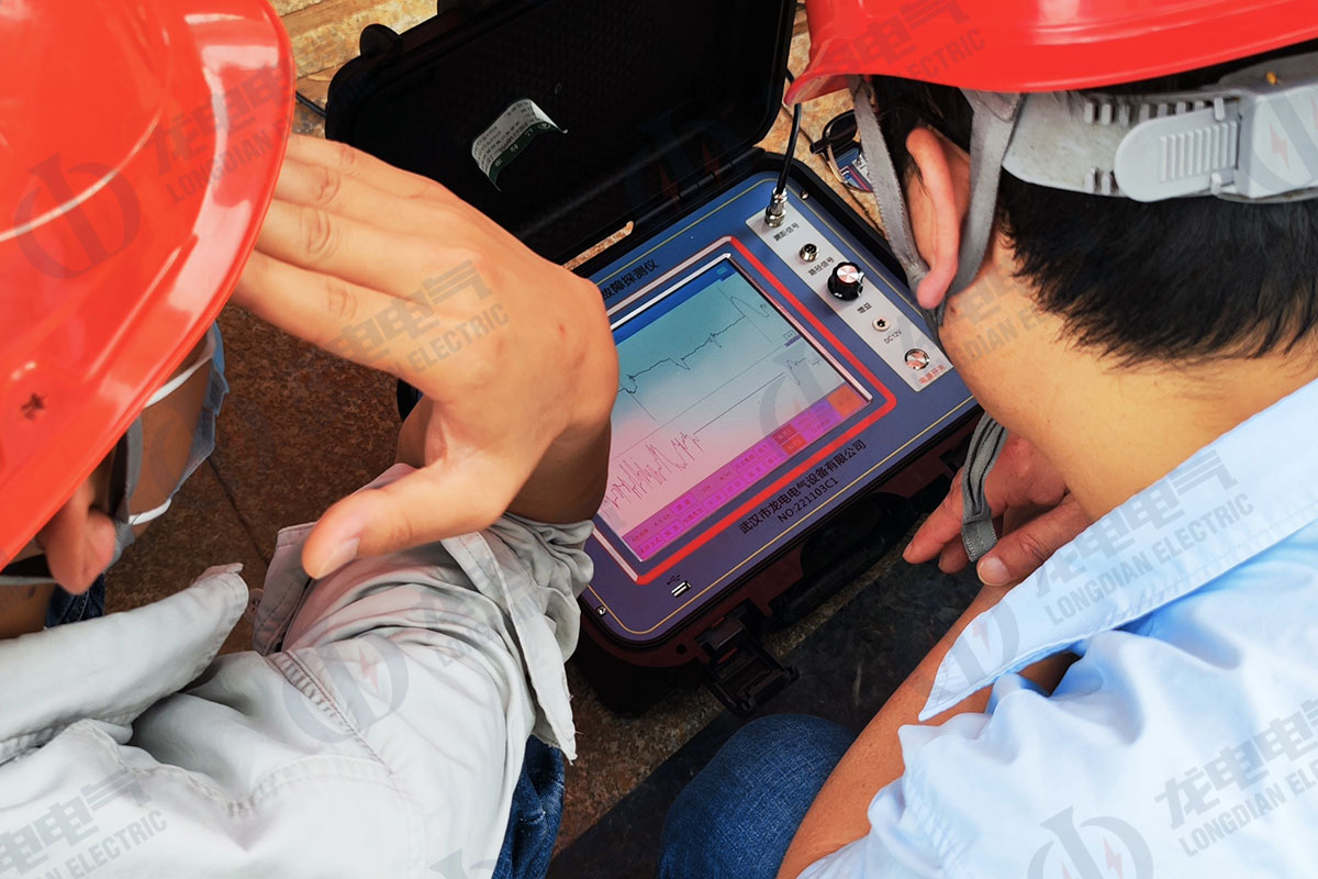 武汉龙电电气技术团队成功为湖北重工客户定位了地埋10K电缆的故障点,该故障点位于水泥铺设的管道内。在高压闪络时,近10米范围内全是啪啪啪的响声。技术团队通过声磁同步加震动分析定位,将故障点精确定在30厘米范围内,大大减少了开挖工程量和费用,赢得了客户的高度赞扬。